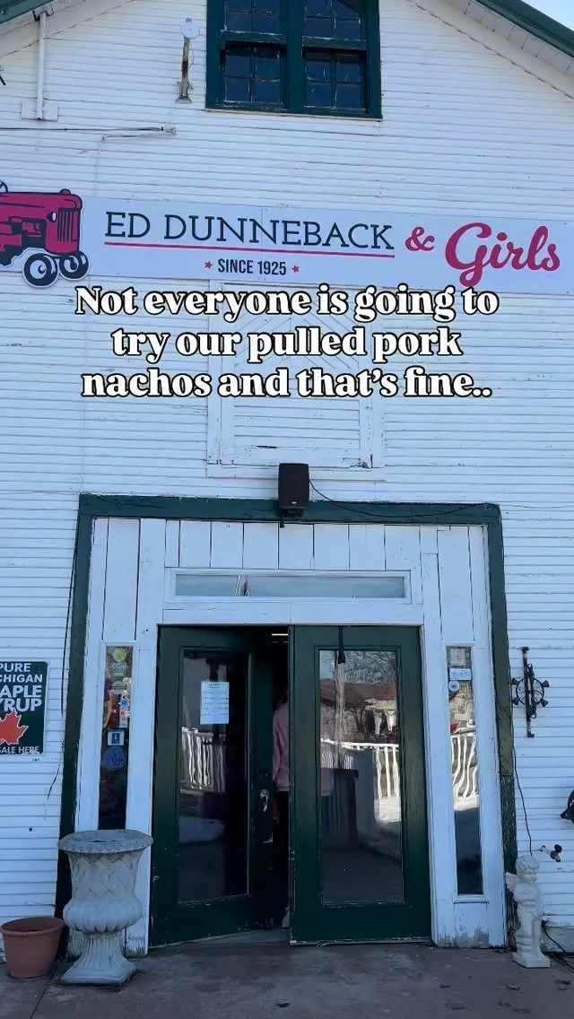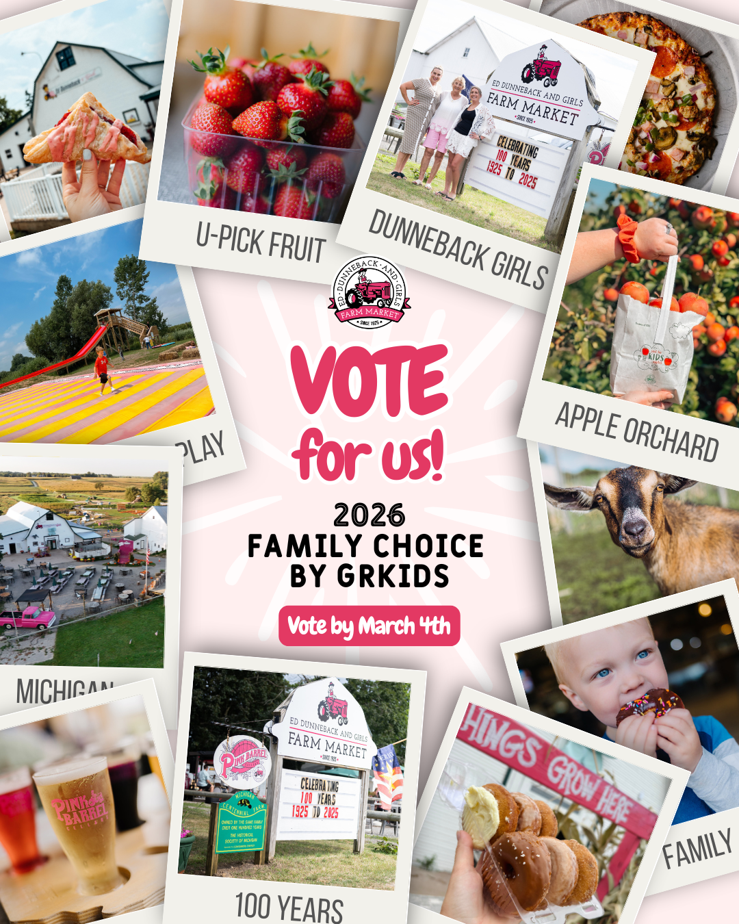 It all started nearly 100 years ago. Edwin Dunneback purchased the farm in Alpine Township in 1925. He farmed 170 acres of apples, peaches, corn, hay and a herd of dairy cows. Edwin had five sons & a daughter. His sons, Edward and Joseph, continued on with the farm adding strawberries & the cold storage, now known as our farm market. Through the 30s, 40s, 50s & 60s, the barn hosted barn dances, weddings, farm tours & hayrides. Edward met his wife Helen at one of these very barn dances! Ed & Helen went on to have 3 children Pamela, Michael & Suanne. In 1969, the family was forever changed when our beloved son, brother & uncle was killed in action in the Vietnam War. It was at this time, when Ed couldnβt bear the & Sons on the front of the barn that Pam climbed up and changed it to & Girls. While this tragedy caused irreparable damage to the family and farm, the family pulled together and continued on farming. Suanne moved back to the farm working with her dad every day. She has run the farm for the past 40 years. Suanne & her husband have two daughters, Stephanie & Sarah. We all live on the farm working to carry on the family tradition started 4 generations ago! We are farming the same ground offering u-pick asparagus, strawberries, sweet & tart cherries, apples & pumpkins. The same barn is now home to our fresh produce market, gift shoppe, bakery, kitchen & tap room! Come spend the day with us, bring your family & friends and start your own family tradition with the Dunneback Girls!