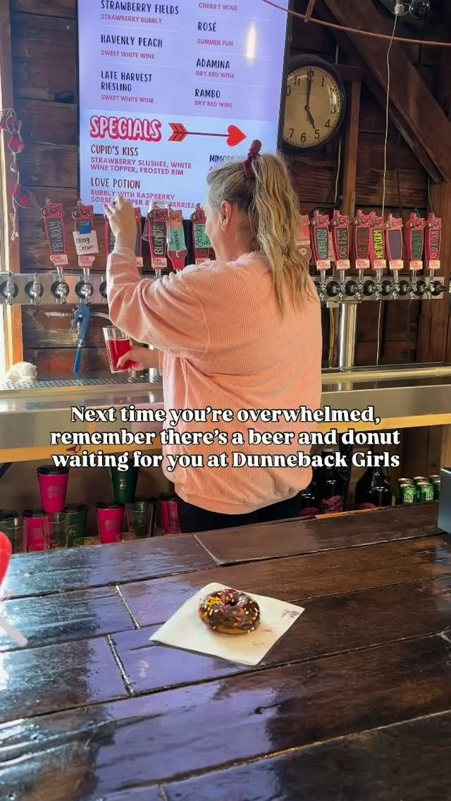 It all started nearly 100 years ago. Edwin Dunneback purchased the farm in Alpine Township in 1925. He farmed 170 acres of apples, peaches, corn, hay and a herd of dairy cows. Edwin had five sons & a daughter. His sons, Edward and Joseph, continued on with the farm adding strawberries & the cold storage, now known as our farm market. Through the 30s, 40s, 50s & 60s, the barn hosted barn dances, weddings, farm tours & hayrides. Edward met his wife Helen at one of these very barn dances! Ed & Helen went on to have 3 children Pamela, Michael & Suanne. In 1969, the family was forever changed when our beloved son, brother & uncle was killed in action in the Vietnam War. It was at this time, when Ed couldnβt bear the & Sons on the front of the barn that Pam climbed up and changed it to & Girls. While this tragedy caused irreparable damage to the family and farm, the family pulled together and continued on farming. Suanne moved back to the farm working with her dad every day. She has run the farm for the past 40 years. Suanne & her husband have two daughters, Stephanie & Sarah. We all live on the farm working to carry on the family tradition started 4 generations ago! We are farming the same ground offering u-pick asparagus, strawberries, sweet & tart cherries, apples & pumpkins. The same barn is now home to our fresh produce market, gift shoppe, bakery, kitchen & tap room! Come spend the day with us, bring your family & friends and start your own family tradition with the Dunneback Girls!