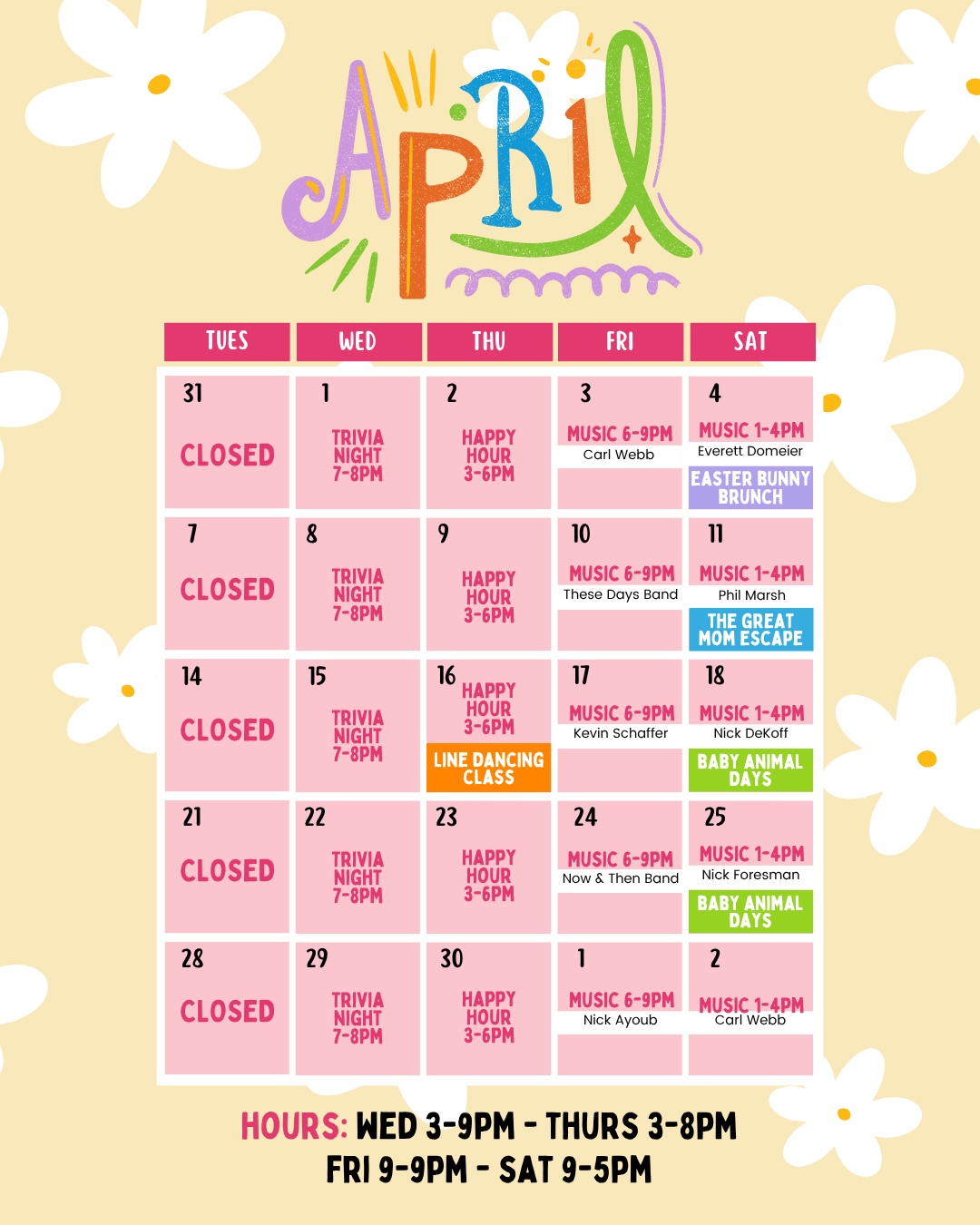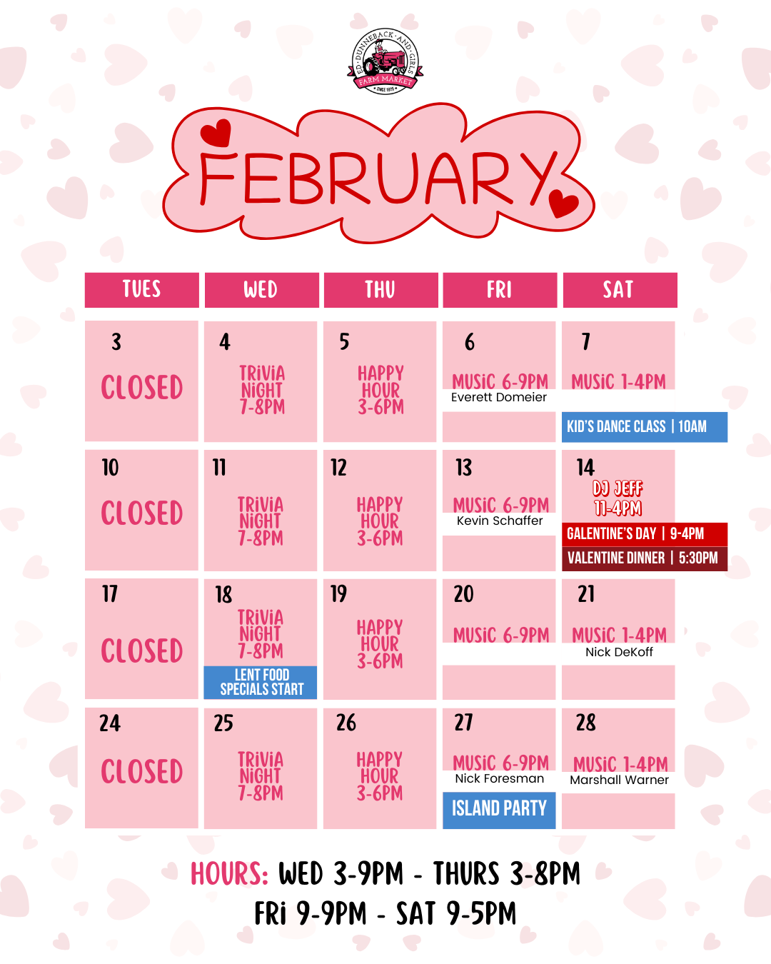 Who loves live music?! We do! Our grandparents loved to dance and grandpa was a singer himself. Music on the farm has been a family tradition for us since the beginning. We are excited to share our love for live music with all of you! We have live music weekly and host our Farm Concert Series monthly. Our live music schedule is below and we look forward to see you and your dancin’ shoes at the farm!